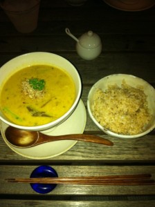 私が頂いたのは、玄米と豆乳仕立ての具沢山スープです。