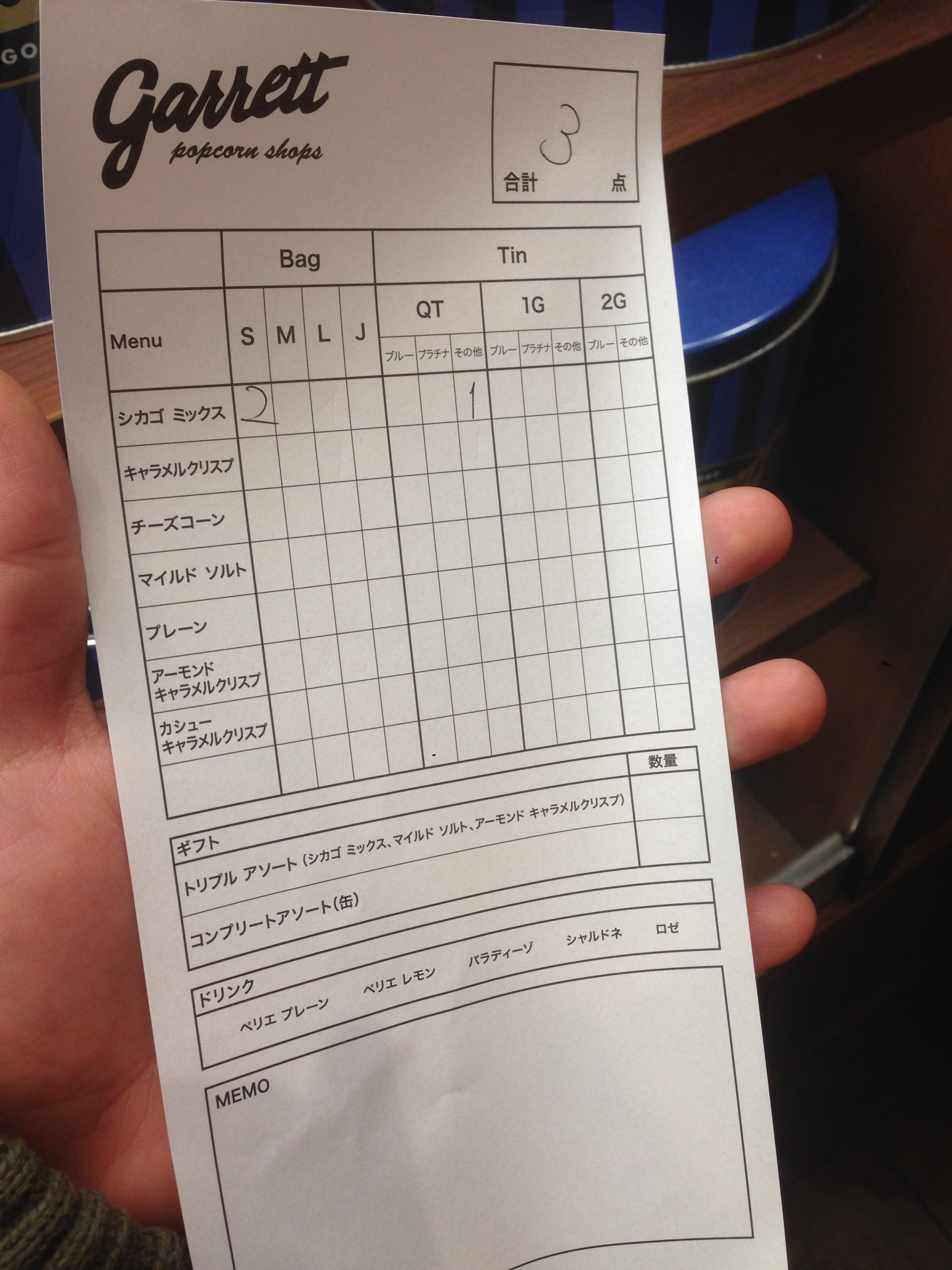 注文をし、オーダーシートを受け取ります。