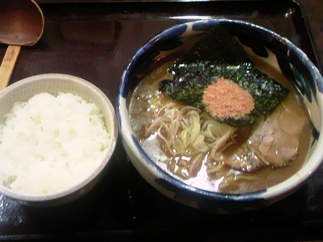ラーメン屋さん、「梟」で、魚介豚骨ラーメン(650円)を頂きました(^ω^)