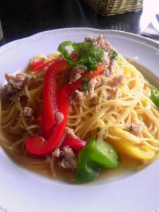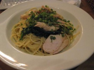 私が頂いたのは、蒸し鶏と青ネギの和風スパゲッティーです。しっかりした味付けで、ねぎ