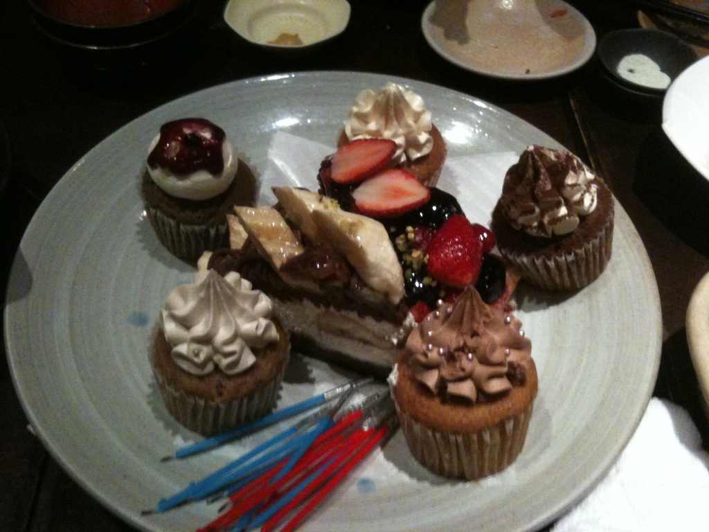 先日、友人の誕生日パーティに、表参道にオープンしたPARIYAのカップケーキを買って行きました。ベリーズカフェのケーキが真ん中にあり、その周りを囲んでるのが、PARIYAのケーキです。今回は、ホールのケーキでなく、このような形で、カップケーキを誕生日ケーキとして登場させました。(友人の苦悩の末の考案ですが頑張ってくれました。)
