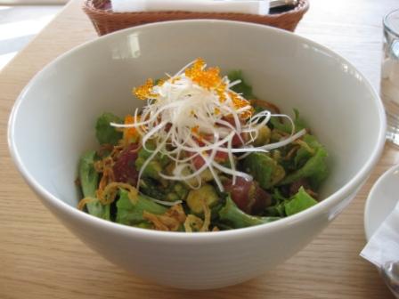 私が注文したランチは、「ポキ丼」です。マグロとアボカドを混ぜたものに、スパイシーなソー