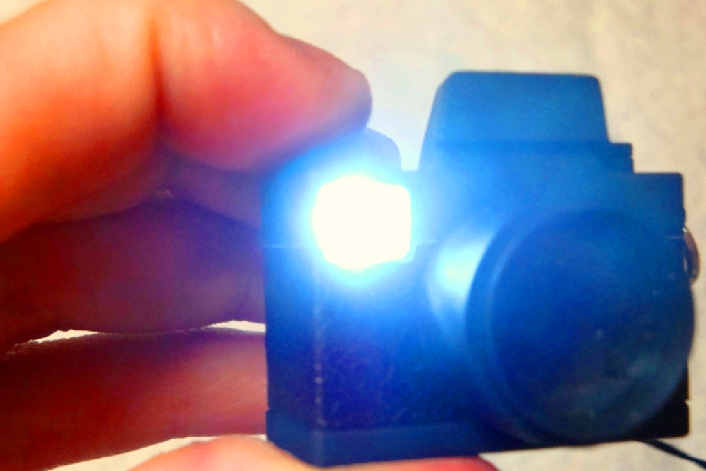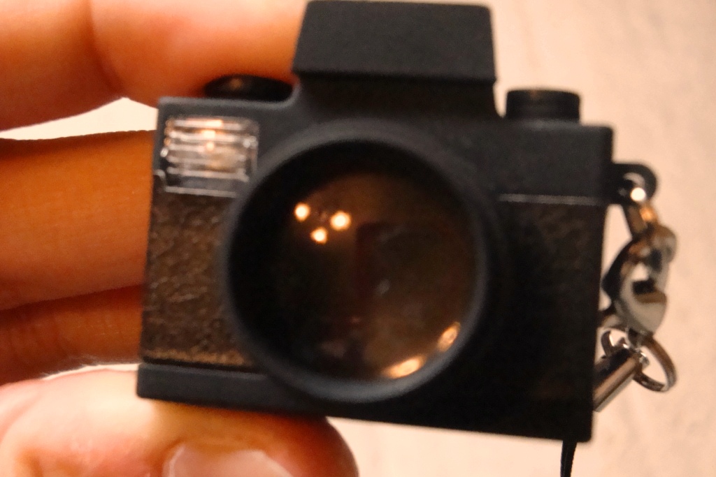 本物のカメラそっくりにストロボが光り、手元を照らしてくれるというスグレモノ!