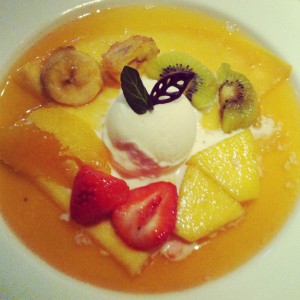 温かいオレンジソースと、冷たいアイスと、しっとりしたクレープの相性が
