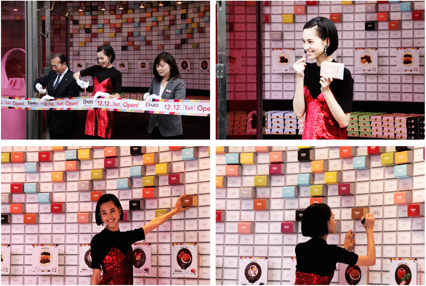 12月12日(土)DARSの日に、表参道ヒルズに期間限定でオープンする「DARS Chocolat Boutique」。オープンを記念して12月10日(木)に行われたオープニングセレモニーには「DARS」のイメージキャラクターを務め、CMにも出演している女優の水原希子さんが登場し、テープカットとファーストテイスティングを行いました。「お気に入りのDARSはヨーグルト&ベリー。クランチが入っていて、ヨーグルトとベリーがチョコの甘さと相まって美味しいです。今まで食べたことのないチョコレートを味わえるので、毎年楽しみにしています。」とハッピーな笑顔でコメント。水原さんお気に入りの「ヨーグルト&ベリー」もショップでゲットできるので是非チェックしてみて下さい。