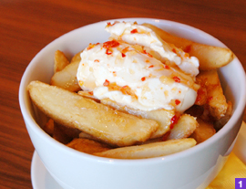 ビールに合うおつまみとしておすすめなのは、『ポテトウェッジ』(900円)。太めにカットされたフレンチフライは、中がホクホク。味の決め手となるのは、スウィートチリとサワークリームがミックスされた特製のディップ。酸味と甘みの絶妙な組み合わせに、ピリッとくる辛味が後を引きます!また、『ビーフタルタルバゲット添え』(1,300円)は生肉を、軽くトーストしたバゲットにのせて頂く、洋風ユッケのような一品です。レッドワインビネガーがさっぱりとした味にまとめ、程よく効いたペッパーがビールを引き立ててくれます。