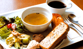 オーガニックでヘルシーなブランチなら「PURE CAFE」。週末限定の『Weekend Special Lunch Plate』(1,360円)は天然酵母パンや素材にこだわった月替わりのサラダとスープ、ドリンクの付いたお得なセット。ドリンクは日替わりの薬効茶がオススメ。