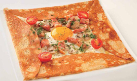 美術品に囲まれてお食事が頂ける「ヨックモック青山本店」のカフェスペース"BLUE BRICK LOUNGE"。絶品ガレット『シャンピニオン』(1,155円)は、外はカリカリ、中はもっちり焼き上げた甘みのある生地で大人気。マッシュルームと厚切りのベーコンに、半熟卵のコンビネーションは目が覚める美味しさ。