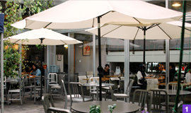 そしてなんといっても目を引くのが、店内中央のテラス席。天気が良い日は特に気持ちよく大人気です。ペットもOKで、予約をすればBBQも楽しめるそう。緑に囲まれ、空を仰げるテラスはとても都会とは思えない解放感。
