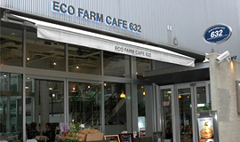 明治通りを少し入ると見えてくるガラス張りのお洒落なお店、「ECO FARM CAFE 632」。