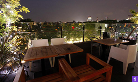 店内奥の扉からテラスに出れば、そこにはまた違ったくつろぎの空間が広がります。表参道のケヤキ並木を見下ろす、特別席からの眺めは絶景で、都会の真ん中にいるとは思えない程、静か。