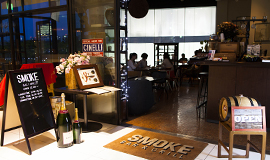 北欧のソファーやテーブル、アンティークの小物が、独自の世界観を造り上げている「SMOKE BAR&GRILL」。
