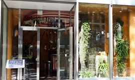 「表参道ヒルズ」の中でも表参道に面したショップのひとつ「Forbidden Fruit」。オレンジ色の照明の雰囲気ある内装が目を引きます。