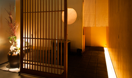 青山通りから路地を入ったところにある「京都おばんざい 茶茶 南青山」。シンプルな階段を3階まで上がり、白木の引き戸を開けると温かい和の空間が広がります。