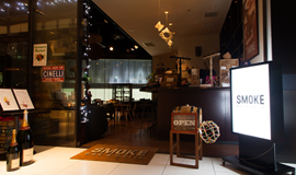 GYREの4階に入っている「SMOKE BAR & GRILL」は、こだわりの北欧製インテリアやアンティークの小物が置かれたとってもお洒落なお店。少し暗めの店内でキラキラと輝く電飾が、ロマンチックな雰囲気を演出しています。
