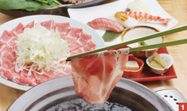 カップルのお客様には、やはり二人用の酒樽がおススメ。恋人同士がグッと近付ける席です。デートにぴったりのメニューは、『いろどり鍋コース』(4,900円/2人前から)。スペイン産のイベリコ豚を、料理長オリジナルの秘伝のダシで頂く贅沢な一品。野菜は、野菜ソムリエがセレクトするというこだわりぶり。お肉ではなく、旬の大間で獲れた新鮮な『本鮪』をオーダーするのもアリ。合わせて飲みたいのは日本酒『石鎚(いしづち)』(900円)。主張が強すぎないので、お食事をしながら飲みやすいお酒です。