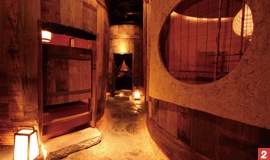 階段を下り店内に入ると、他の飲食店では見られない光景が広がります。ところ狭しと並んだ丸みを帯びた個室は、信州で実際に使われていた酒樽。大小様々な酒樽がそのまま個室になっています。