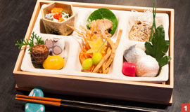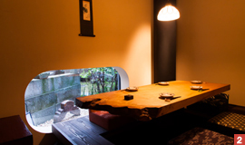 デートにおススメいただいたメニューは、華やかな『ふくい旬菜の盛合わせ』(1,260円)。旬の素材を中心に、前の季節の名残り、次の季節の始まりを感じられるメニューが盛り込まれた6品を少しづつ楽しめる贅沢な前菜です。越前かにや鮮魚など福井のご当地食材はもちろん、越前塗りの食器、内装に使用されている木材もすべて福井産。カップルの方には、個室はもちろん隣合わせに座ることのできるカウンター席もおススメです。