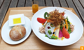 口コミで評判の高い『季節野菜のせいろ蒸し』(1,050円) はもちろん、5/13〜 ランチに登場する『FIFTEEN BEAUTY SALADA』(1,500円) もおススメ。その名の通り、15種類の旬野菜を使用し、ニールズヤードのオーガニックビューティオイルを使ったドレッシングで頂くサラダランチです。新鮮な野菜のシャキシャキ感、アクセントにのせられたごぼうの素揚げのパリパリ感、そしてお肌に効果が期待できるドレッシングのハーモニーが楽しめます。