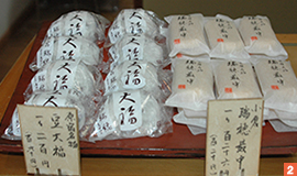 『豆大福』(200円) は上品な甘さで、舌触りの良いこし餡がたっぷり入った人気商品。お餅と餡、そしてお餅に練りこまれた豆の食感、ほんのりとした塩味、上品な甘さのバランスは絶妙。7月には期間限定の水ようかんも始まるそうです。暑くなってくるこの季節、さっぱりした甘さの和菓子はお持たせにもお勧めです。