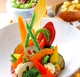 季節ごとに移り変わる野菜の“顔”(色や形)を大切にしていて、力強く元気な旬の野菜を、様々な形で戴くことができます。