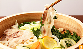 お薦めのメニューは『お野菜たっぷりカレー定食』(ランチ1,400円)と『お野菜とホエー豚のハリハリ蒸し』(1,280円)。定番であるカレーは、ご飯が隠れるほど野菜がたっぷり。ごろごろとした野菜はそれぞれに合った調理がなされており、ひとつひとつの食感や甘みが引き出されています。ハリハリ蒸しは旬の野菜に豚肉の旨味が染みこみ、より深い味わいを愉しめます。こちらは季節限定メニューなのでお見逃しなく。