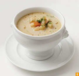 お薦めのスープは『ウィーン風ジャガイモのスープ』(S 600円 / L 800円)。様々な具材をふんだんに使用し、ポタージュ系のぽってりとした口当たりのスープに仕上がっています。サワークリームがアクセントに使われており、お味はさっぱりと食べやすいのが特徴。