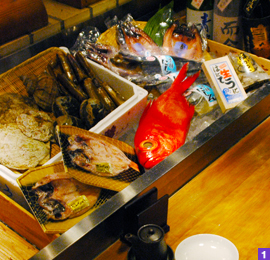 炉端焼きとお酒の品揃えが自慢の「炉端 シゲゾウ」。毎朝築地から仕入れられる、新鮮なこだわりのお魚は、旬の日本酒やワインとよく合います。