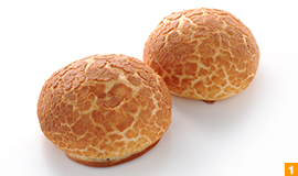 ランチタイムのイチオシは、米粉を表面にまぶして香ばしく焼き上げた、オランダの代表的なパン『ダッチブレッド』(280円)とオープン当時からの看板商品『ダークチェリー』(230円)。