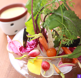 全国の契約農家から毎朝届く旬の野菜はどれも新鮮。クリーミーで味わい深いソースが、新鮮野菜の美味しさをさらに引き出してくれます。