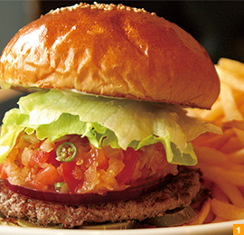 ふわふわのバンズに挟まれた、シャキシャキ野菜とジューシーなお肉の旨味が絶妙なバランスで口の中に広がります。ふんだんに使われた瑞々しいトマトとオニオンやハラペーニョで爽やかに仕上げたサルサソースが夏の暑さを吹き飛ばしてくれること請け合いです!サイズもちょうど良い大きさなので、大きな口で頬張らなくても大丈夫。デートでもお子様と一緒でも楽しめます。