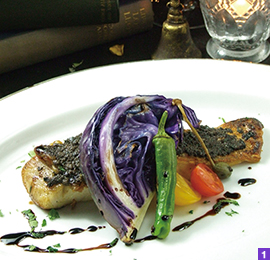 今回特にオススメしたいのは『スズキのオーブン焼き〜タプナードソースで〜』(1,450円)。ハーブとガーリックに一晩じっくり漬け込み、パリッと焼き上げた香ばしいスズキは格別です。また、上にかけられたケッパーとオリーブとアンチョビが織り交ぜられたインパクトのある真っ黒なソースがとても印象的です。