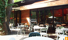 いちょうの木があるテラス席は、葉に色が付き始める10月や黄葉シーズンの11月が人気です。