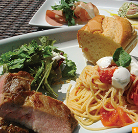 太陽の光がふりそそぎ、リゾート感を味わえるデイタイムから、ライトアップされた光がプールに照らし出される幻想的なナイトタイムまで、時間と共に楽しめるようになっています。お料理には旬な野菜を使うというこだわりももっています。