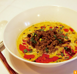 まろやかな豆乳にピリ辛なラー油が絶妙に合わさり、気がついたら飲み干してしまうほど飲みやすいスープです。冷やし麺なのですが、体がぽかぽか温まります。