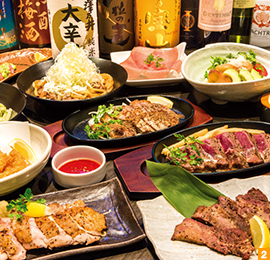 忘年会&新年会にお薦めのコースは『ご宴会3時間 月コース 飲み放題付き』(5,480円)。新鮮でみずみずしい『スモークサーモンとアボガドのシーザーサラダ』や、お肉がジューシー、そしてクリーミーな『牛ももの網焼き〜シチュー仕立て〜』、おろしポン酢がさっぱりとした味わいの『鶏の唐揚げ』など、素材そのものが持つ本来の美味しさにこだわった10品を頂けます。