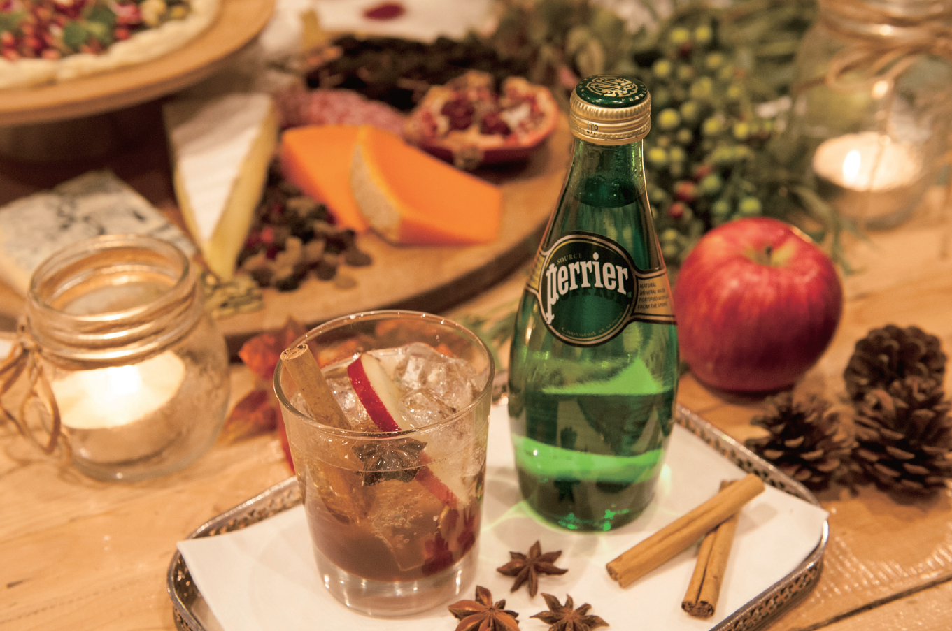 ホリデーシーズンのお楽しみといえば、気の置けない仲間とのホームパーティー。パーティーのスタートを華やかに飾るのに欠かせないのが、乾杯のドリンク。アルコール派はもちろん、お酒が苦手な人や飲めない人…、参加者の様々な好みを配慮して、どんな人でも愉しめるドリンクを用意するのが、ホストの腕の見せどころ。また、おもてなしの一杯だからこそ、味やクオリティにもこだわりたいところ。そこで、フランスの天然炭酸水「ペリエ」の出番です。ストレートでそのまま飲むのはもちろん、リキュールやジュースを割ってカクテルドリンクとするなど、楽しみ方は自由自在。パーティーならではのスペシャルな乾杯を演出してくれる「ペリエ」の魅力をご紹介します。