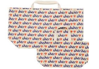 世の女性達が持っている「Cher」アイテムが、コレ!「Cherエコバッグ(大)」(1,260円)と「Cherエコバッグ(中)」(840円)。商品をご購入されたお客様のみ各サイズ1つずつの販売。