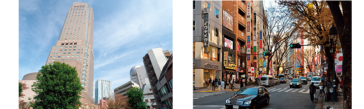 渋谷の魅力は、駅周辺だけではないと語ってくれた亀田さん。『桜丘町(左)にも素敵なお店が沢山ありますし、道玄坂(右)にも話題のお店が増えていて、よく会社の皆で飲みに行っています。あえて賑やかな表通りを避けて裏道を通って、新しい発見やお気に入りのルートを見つけたりもしています』まちの姿も楽しみ方も多種多彩なのも渋谷らしさ!