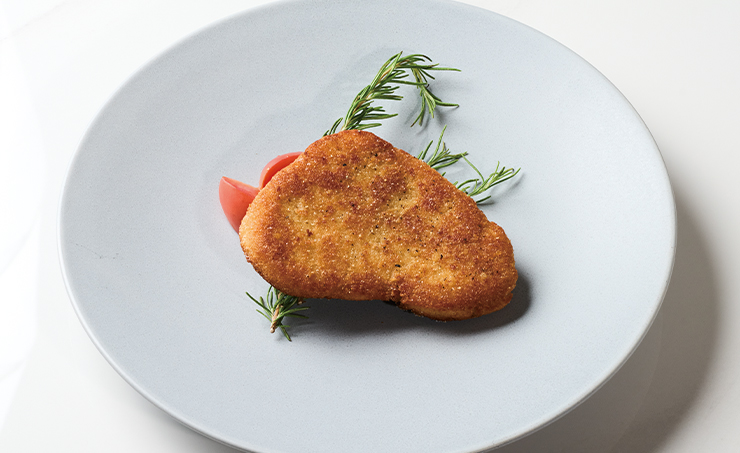 アメリカンポークのヒレの旨みを閉じ込めたカツレツは、カリッと揚がっており、口に運ぶと衣のサクサクの食感と、しっとりジューシーなポークの旨みが口中に広がります。塩とチーズとパン粉しか使用していないので、肉の旨みをシンプルに楽しめる一皿です。