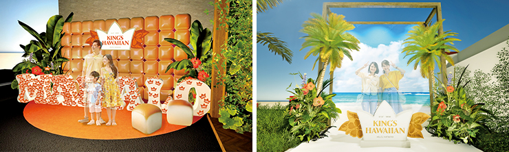 まるで、ハワイアンスウィートロールのパッケージの中に入った気分!さらに、巨大ハワイアンスウィートロールや、まるでハワイな美しい海とサンドアートなど、会場内には、KINGʼS ORANGE ISLANDを訪れた記念に撮影したくなるフォトスポットが沢山。お友達やご家族と一緒に、ぜひ満喫して。