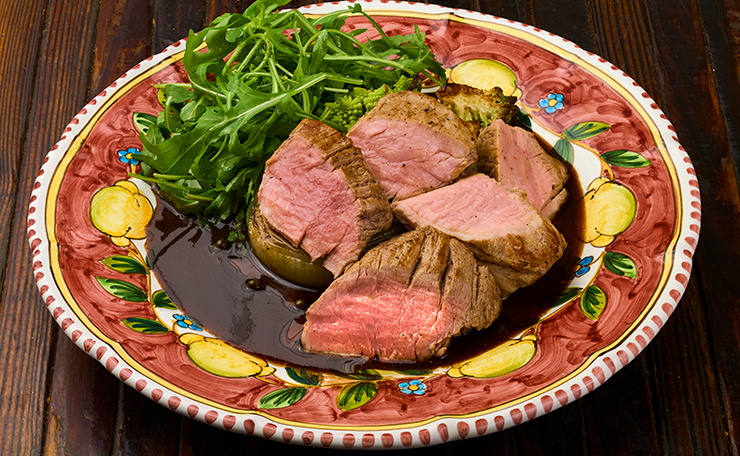アメリカ産テンダーロインのロースト きのこのフリカッセとシェリービネガーのソース