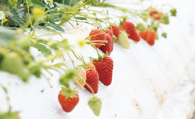 本フェアのいちごを生産する優峰園フルーツランド代表の田尻賢治さん。優峰園フルーツランドでは、いちごの他にみかん、梨、ぶどうなど四季折々の果物狩りを楽しめます。