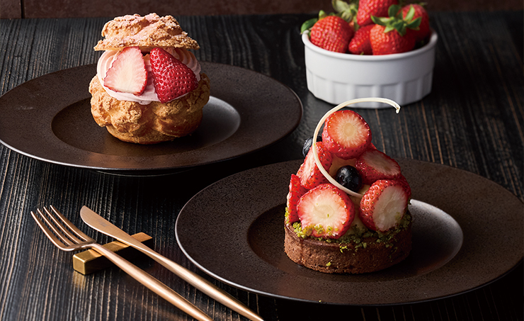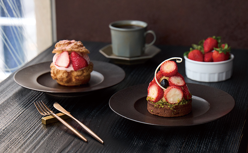 写真下:熊本産いちご〝ゆうべに〟のチーズケーキタルト 1,320円