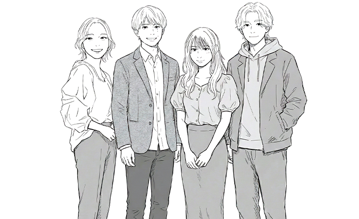 左から、宇治さん、本田くん、川口さん、矢野くん。