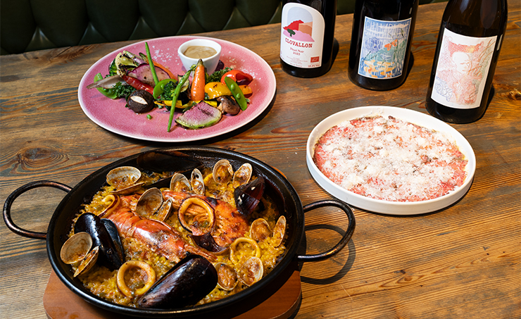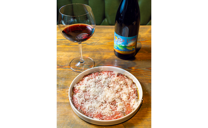 南青山の骨董通りから一本入った路地の地下に、知る人ぞ知る美食空間が広がっています。「W AOYAMA -The Cellar & Grill-」は、ワインショップとレストランが融合した、ワイン好きにはたまらない一軒です。店内に足を踏み入れるとまず目を奪われるのが、圧巻のワインセラー。ここには世界各国から集められたクラシックな銘柄から、今注目のナチュラルワインまで、常時500種類以上がずらりと並びます。特筆すべきは、このセラーのワインを“小売価格+抜栓料(1,200円)”という破格のプライスで楽しめること。高級店なら気後れしてしまうようなボトルも、ここならカジュアルに手が届くことも。実際にセラーに入って、ワインの説明を読みながら「今日の一本」を選ぶ時間はまさに至福のひとときです。ワインのお供には、溶岩石で焼き上げるグリル料理がお薦め。新鮮な野菜、魚介、お肉、それぞれの素材が持つポテンシャルを、溶岩石焼きの香ばしさが最大限に引き立てます。また前菜で是非頼んでいただきたいのは、「豊西牛のカルパッチョ」(2,200円)。口の中で広がる赤身の優しい甘みと、パルミジャーノチーズのコクが絶妙にマッチし、ワインが進むこと間違いなしの一皿です。また、溶岩石焼きで旬の野菜を濃厚なソースでいただく「今治野菜のグリル 蟹味噌ソース」(1,760円)や、魚介の旨味が凝縮された「魚介のパエリア」(2,640円)も外せません。気心知れた友人とのディナーやデートはもちろん、ふらりと一人でワインを楽しみたい夜にも最適。圧倒的なコストパフォーマンスと心地よい賑わいが魅力の「W AOYAMA -The Cellar & Grill-」は、表参道で“日常使い”ができる、とっておきのワイン酒場です。