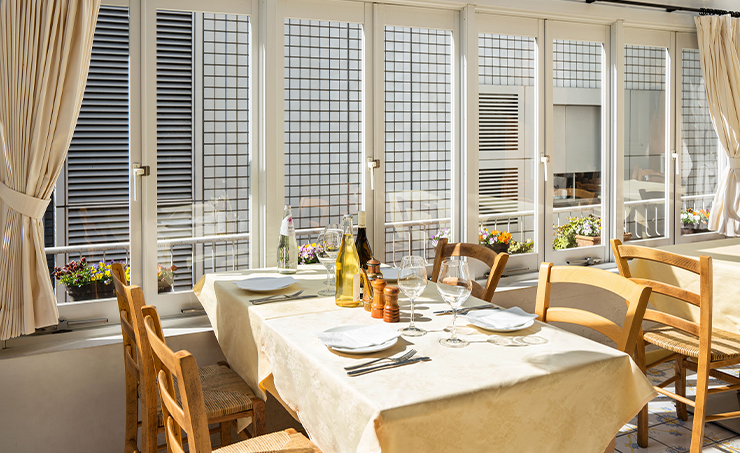 職人が丁寧に一枚ずつ焼き上げた本場のナポリピッツァをいただくことができる「ナプレ 南青山本店」。バリエーション豊かなメニューの中でお薦めなのが、王道の『マルゲリータ』(1,950円)です。高温の窯で一気に焼き上げることで、外はカリッと香ばしく、中はもちもちとした生地がやみつきになる程の美味しさ。さらにベースになっているトマトソースの、濃厚な甘みと程よい酸味のバランスが絶妙で、生地の味を引き立てます。ランチタイム時の明るく開放的な店内は、リフレッシュするのにぴったりです。