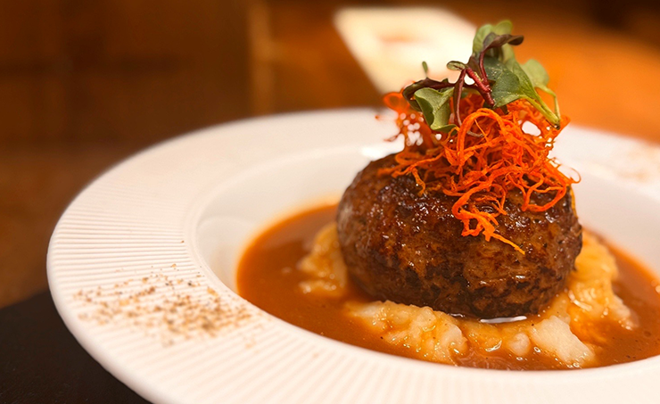 キャットストリートの奥に佇む、赤いテント屋根が特徴的なビストロ「ビストロ 神六」。ここでは、シェフが厳選する食材で作られたこだわりの料理を堪能することができます。特にランチで人気のメニュー『とろ生ハンバーグステーキランチ』(1,848円)は一度味わって欲しいお薦めの一品。外側はしっかり焼かれ、中身はとろける食感のレアハンバーグは、一口味わう度にお肉の旨みが口いっぱいに広がります。上にフライドキャロット、下にはマッシュポテトが添えてあるのも嬉しいポイント!落ち着いた店内で味わう心温まる料理で、春先の疲れを吹き飛ばしましょう。